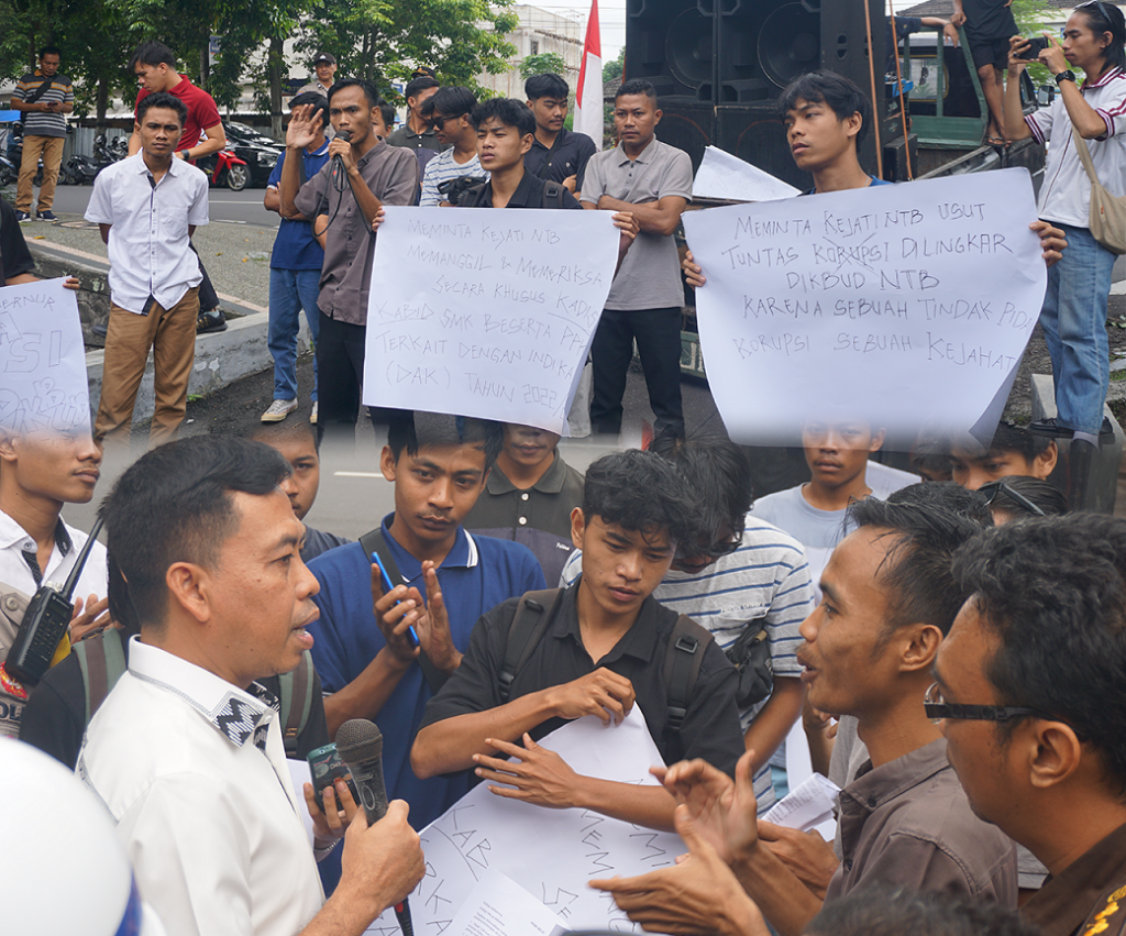 Aksi unjuk rasa dilakukan terkait adanya dugaan tindak pidana korupsi Dana Alokasi Khusus (DAK) pada Dinas Pendidikan dan Kebudayaan (Dikbud) Provinsi NTB yang diduga ada indikasi dikorupsi