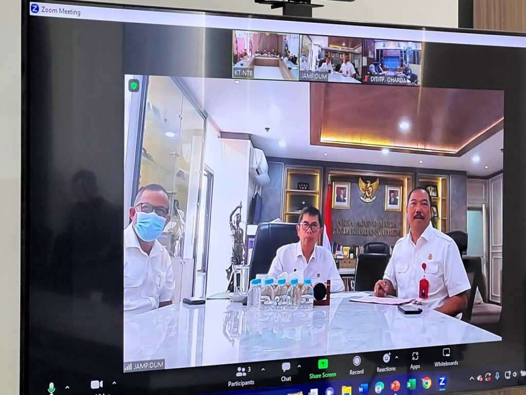 Atas dasar perdamaian dan permohonan tersebut beserta tersangka baru pertama kali melakukan perbuatan pidana serta ancaman pidana dibawah 5 (lima) tahun, Selasa, 29 Agustus 2023, Kepala Kejaksaan Negeri Mataram, Ivan Jaka M.W., melaksanakan pemaparan perkara permohonan Restorative Justice secara virtual, dihadapan Jaksa Agung Muda Bidang Tindak Pidana Umum Kejaksaan RI yang dihadiri secara virtual oleh Kepala Kejaksaan Tinggi Nusa Tenggara Barat, Nanang Ibrahim Soleh, S.H., M.H. didampingi Asisten Bidang Tindak Pidana Umum, Ikeu Bacthiar, S.H., M.H. dan Para Kasi pada Bidang Tindak Pidana Umum Kejati NTB.