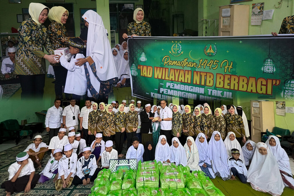 Di bulan suci ramadhan ini sebagai bentuk rasa syukur Kepala Kejaksaan Tinggi NTB, Dr. Bambang Gunawan, didampingi oleh ibu Ketua IAD Wilayah NTB, Ny. Narni Bambang Gunawan Wakil Kepala Kejaksaan Tinggi NTB, Dr. Abd Qohar AF, SH., MH. Asisten Intelijen I Wayan Riana, SH., MH. Asisten Pembinaan, Iwan Setiawan, SH., MH. serta anggota IAD Wilayah NTB berkunjung ke Panti Asuhan Nurul Jannah pada senin, 25 Maret 2024.