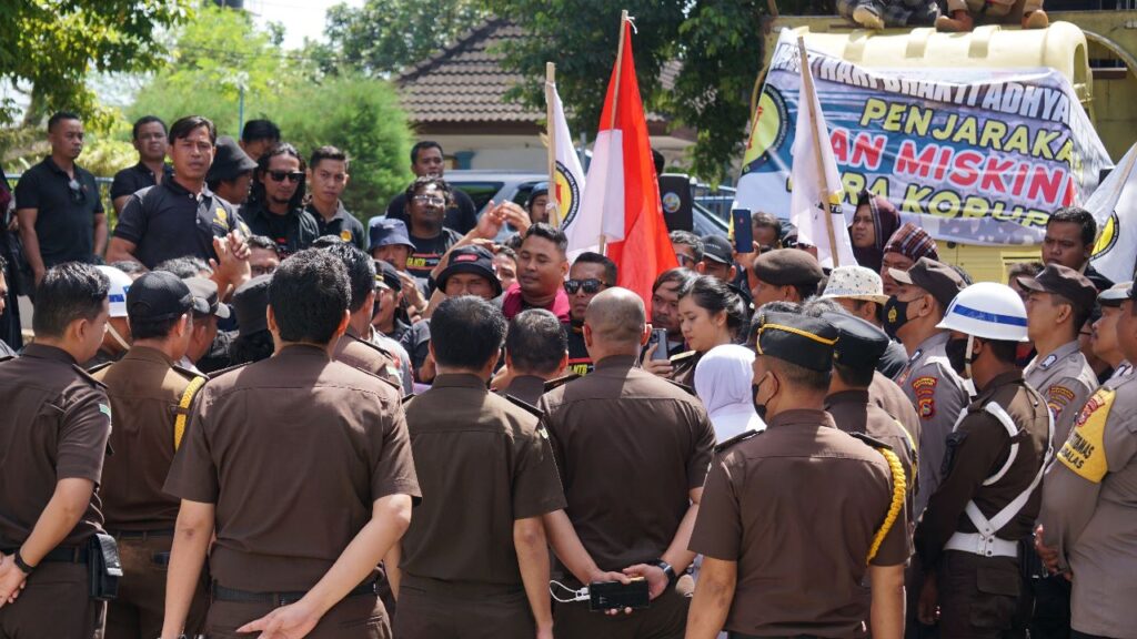 July 26, 2023Mataram – Unjuk rasa atau demonstrasi dari Lembaga Swadaya Masyarakat (LSM) KASTA NTB dengan massa kurang lebih 50 orang sekira pukul 11.00 wita bertempat di halaman kantor Kejaksaan Tinggi NTB (Rabu, 26/07/2023).