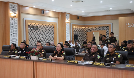Mataram, Selasa 06 Januari 2026 – Bertempat di Aula Kejaksaan Tinggi Nusa Tenggara Barat, Kepala Kejaksaan Tinggi Nusa Tenggara Barat, Bapak Wahyudi, S.H., M.H. didamping Wakil Kepala Kejaksaan Tinggi NTB, Para Asisten, Koordinator, Kasi dan Jaksa Fungsional mengikuti Pengarahan Jaksa Agung Muda Tindak Pidana Umum (JAMPIDUM), Bapak Prof. Asep Nana Mulyana terkait berlakunya KUHP dan KUHAP Baru yang diadakan secara daring.