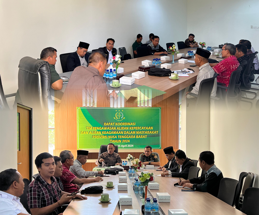 Rapat Koordinasi Pengawasan Aliran Kepercayaan dan Aliran Keagamaan pada hari Kamis, 25 April 2024 kegiatan ini bertujuan untuk untuk membahas atau diskusi terkait Aliran Kepercayaan dan Aliran Keagamaan di wilayah Nusa Tenggara Barat.