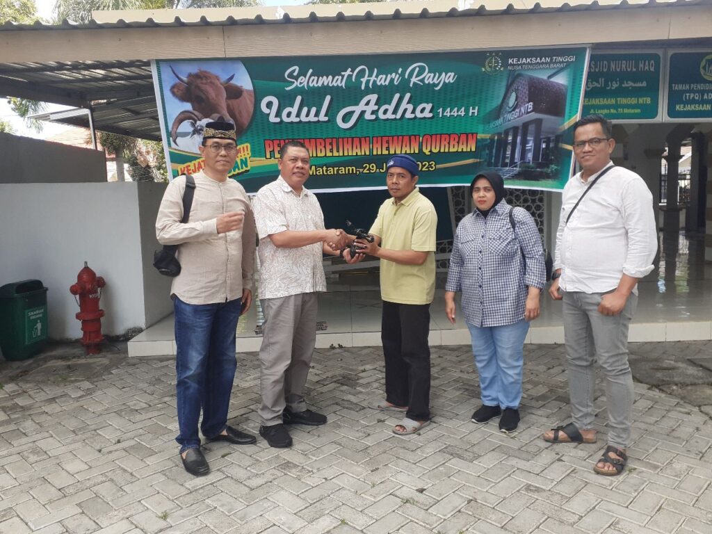 Juni 29, 2023Kepala Kejaksaan Tinggi NTB, Nanang Ibrahim Soleh pada Hari Raya Idul Adha 1444 H/2023 Tahun ini, Menyempatkan diri, melakukan penyerahan Hewan kurban kepada Ketua Panita Qurban, Asbin Kejati NTB didampingi Asdatun Kejati NTB dan anggota Panitia lainnya bertempat di RPH Pejanggik Kota Mataram